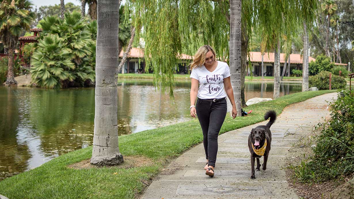 A family friend attended Saddleback's Rancho Capistrano campus and Kelsey began joining her on the weekends. She has found the Rancho campus the perfect setting to connect with healthy Christian community again. Inspired by the counseling night for shooting surviviros, Kelsey has looked for more ways to get involved at church, going through all of Saddleback's Classes so she can give back to others and share what God has done in her life in spite of the tragedies she's faced. The symptoms of her PTSD (post-traumatic stress disorder) are affecting her less frequently, but she's still looking for ways to continue her healing journey. She regularly meets with a counselor for one-on-one sessions and had her lab-shepherd-mix dog, Olive, trained to become her service dog to help her if she’s out in public and has a flashback.